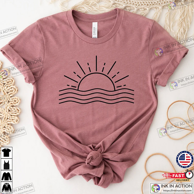 Ocean Sun Tee Nature Graphic T-shirt, Womens Summer Tee