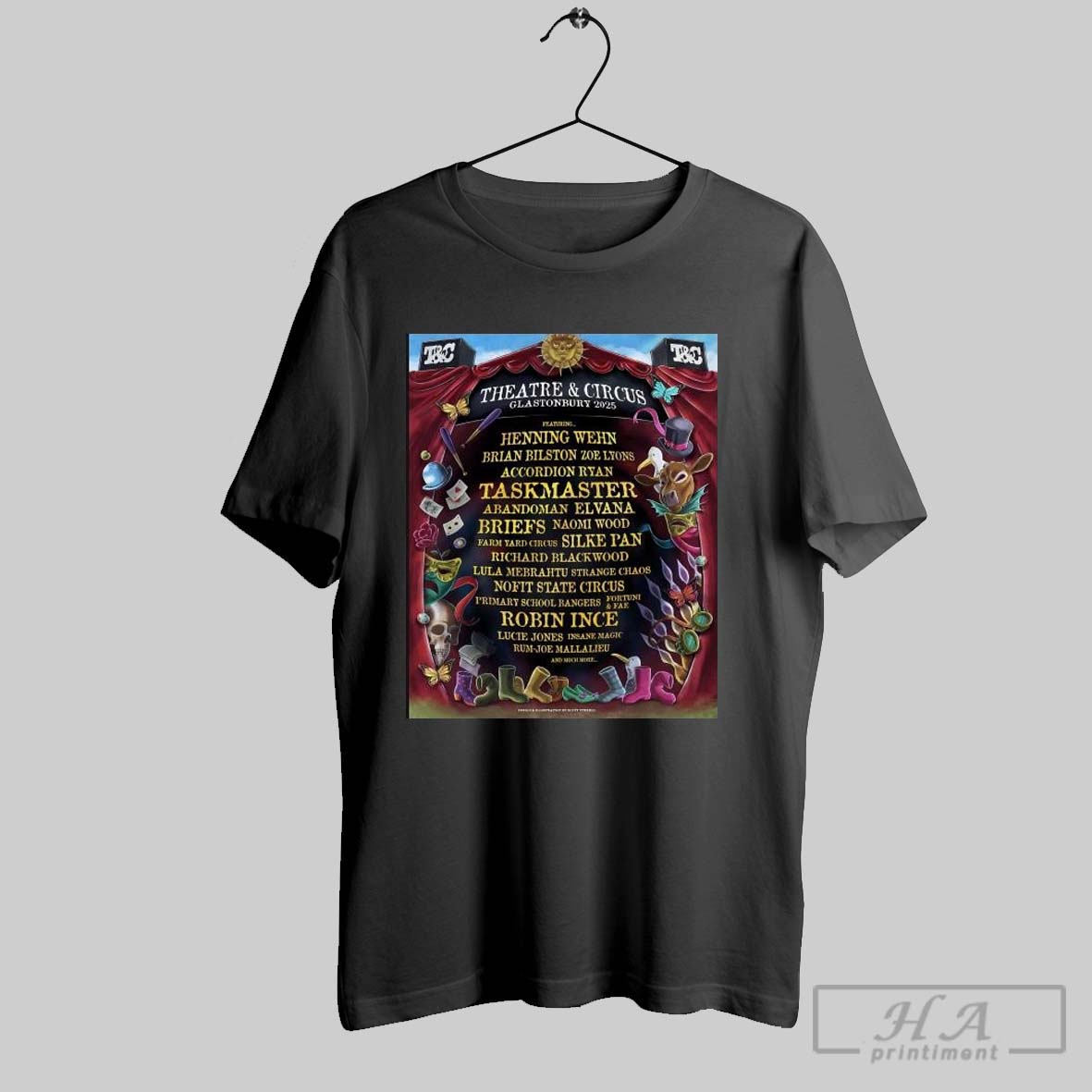 Official Theatre Circus Glastonbury Festival 2025 Featuring Henning Wehn Brian Bilston Zoe Lyons T Shirt