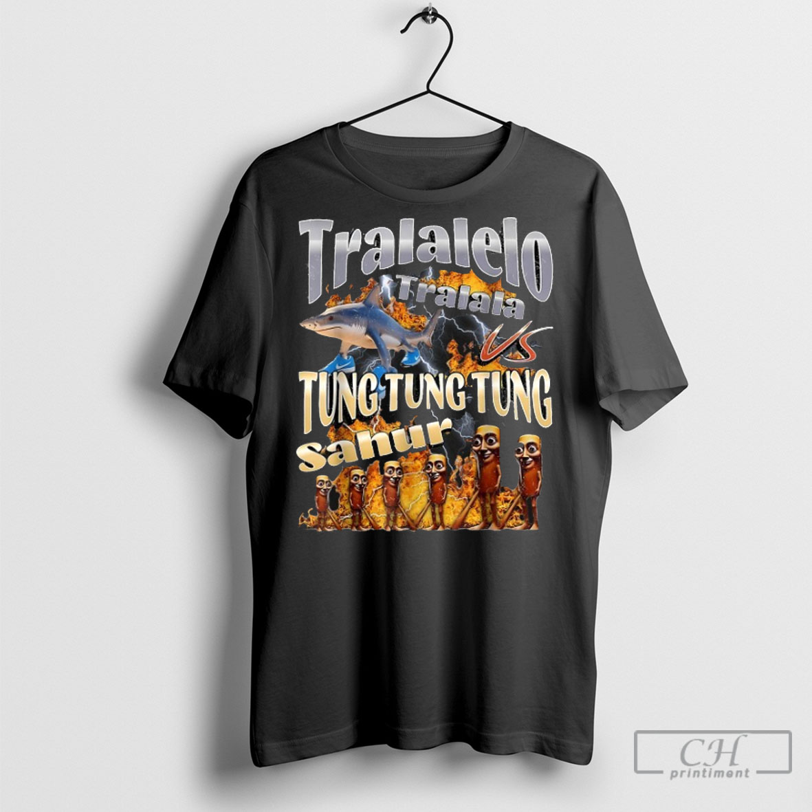 Official Tralalelo Vs Tung Tung Tung Sahur Italian Brainrot Meme T Shirt