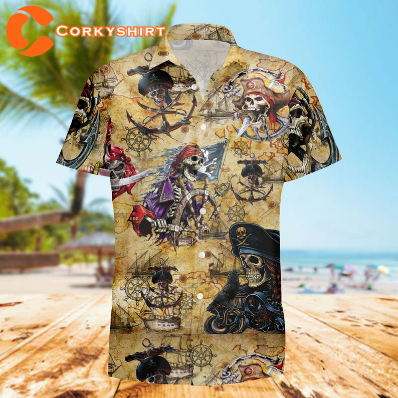Pirates Skull Hawaii Skeleton Dead Mans Amazing Pirate Aloha Shirt