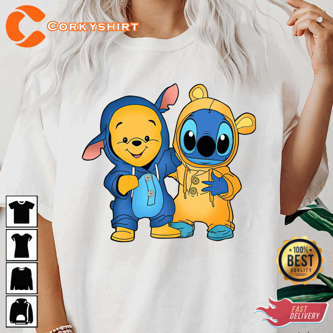 Pooh And Stitch Cute Friends Family Match Disney T-shirt