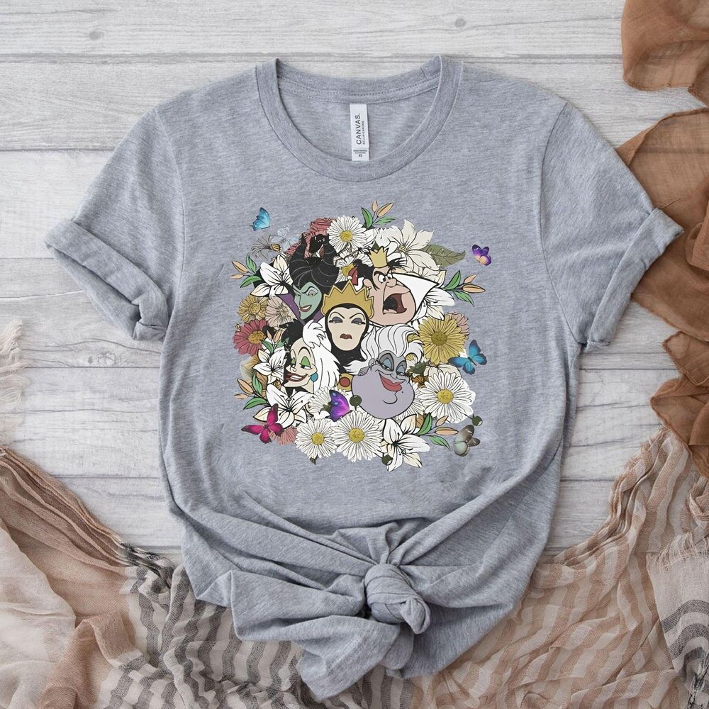 Retro Disney Villains Characters Floral Apparel