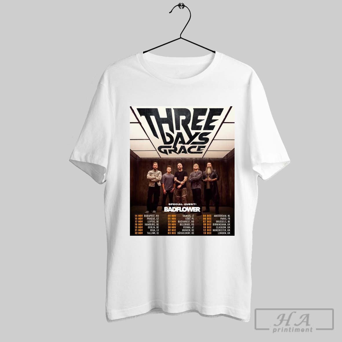 Three Days Grace With Special Guest Badflower 14 Nov Budapest Hu 15 Nov Prague Cz 17 Nov Leipzig De Poster T Shirt