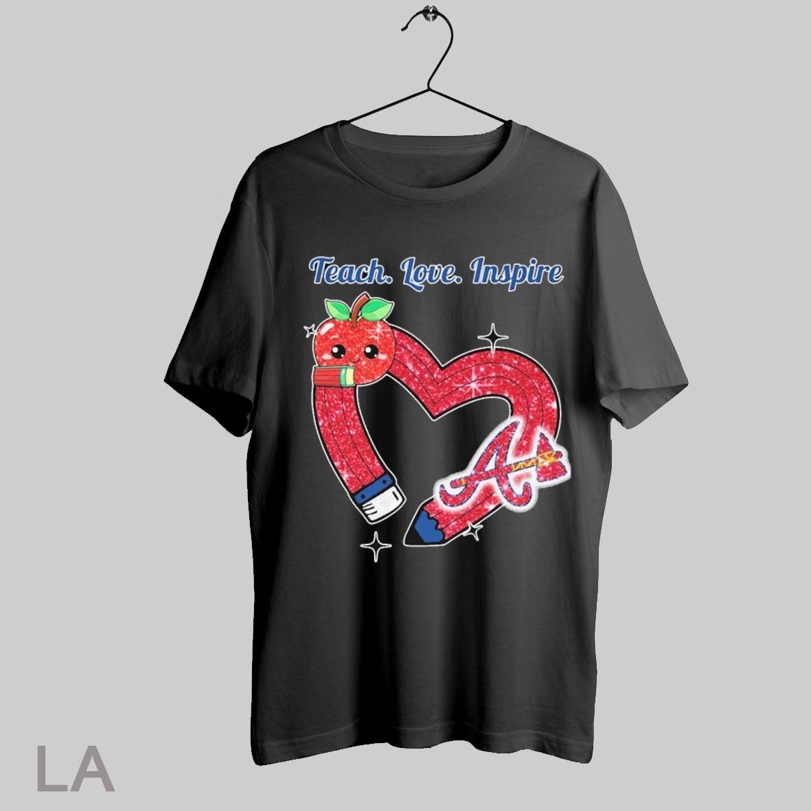 Top Atlanta Braves Teach Love Inspire Apple Heart T Shirt Sweatshirt Hoodie Shirt