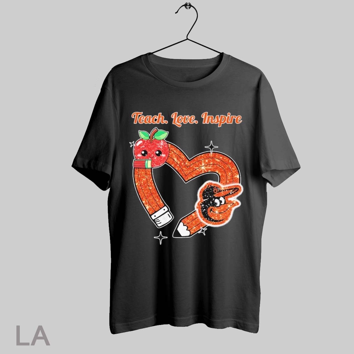 Top Baltimore Orioles Teach Love Inspire Apple Heart T Shirt Sweatshirt Hoodie Shirt