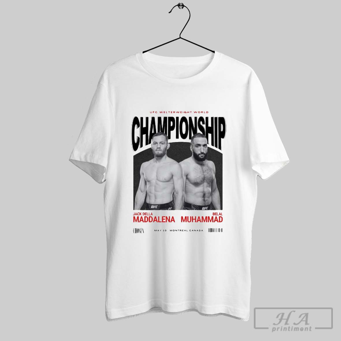 Ufc Welterweight World Championship Jack Della Maddalena Vs Belal Muhammad May 10 2025 Montreal Canada Poster T Shirt