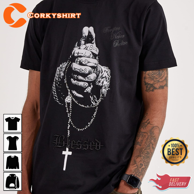 Uk Praying Hands Rhinestone Fans Club T-shirt