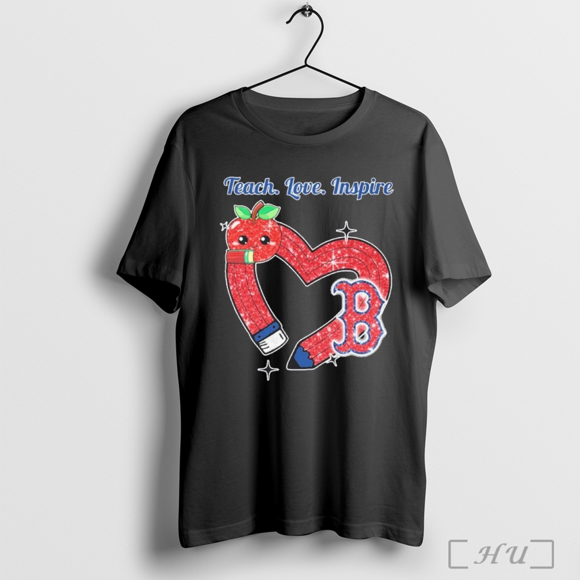 Boston Red Sox Teach Love Inspire Heart Apple Diamonds Shirts Sweatshirt