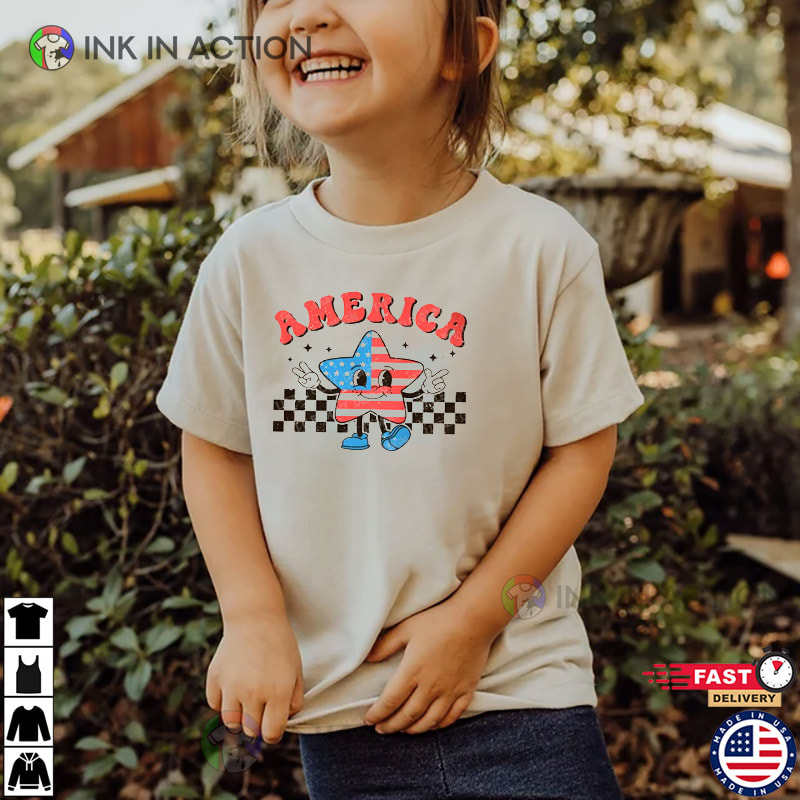 Vintage American Flag 4th July Kids Shirt