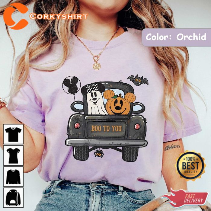 Vintage Boo To You Mickey Pumpkin Truck Minnie Ghost Halloween T-shirt
