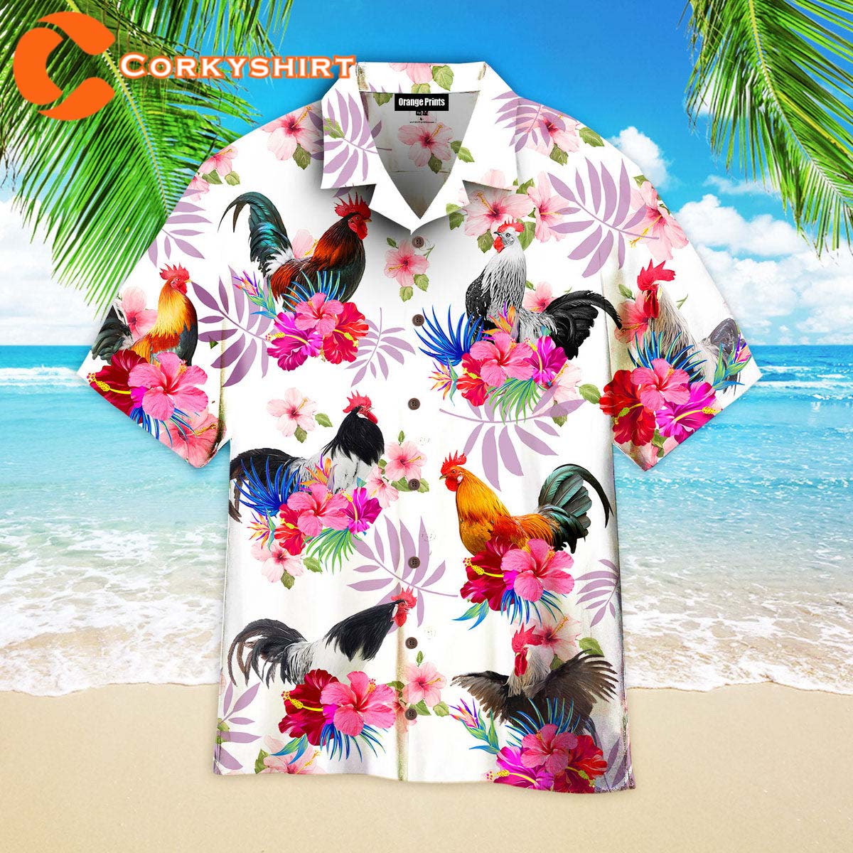 Chicken Hibiscus Rooster Pink Hawaiian Shirt