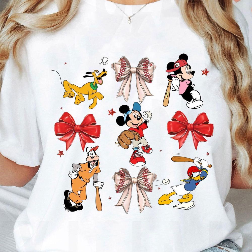 Coquette Bows Watercolor Mickey Friends Baseball Apparel