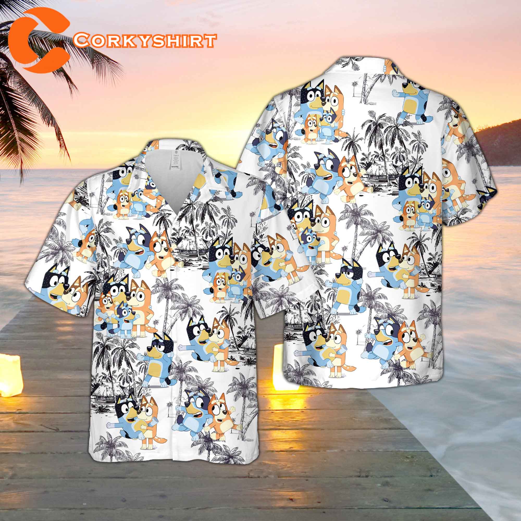 Dad Gifts Bluey 4th Of July Button Hawaiian Shirtdad Gifts