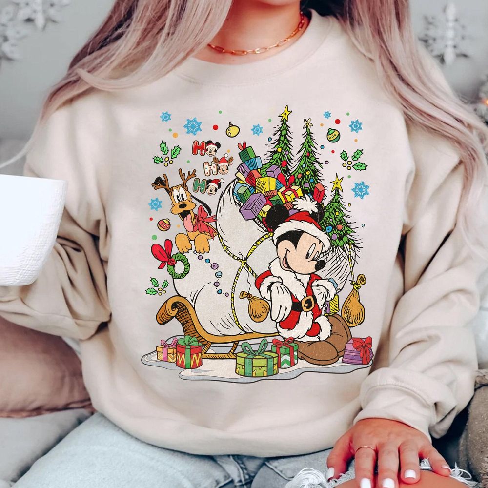 Disney Vintage Santa Mickey And Pluto Christmas Tree And Lights Merch