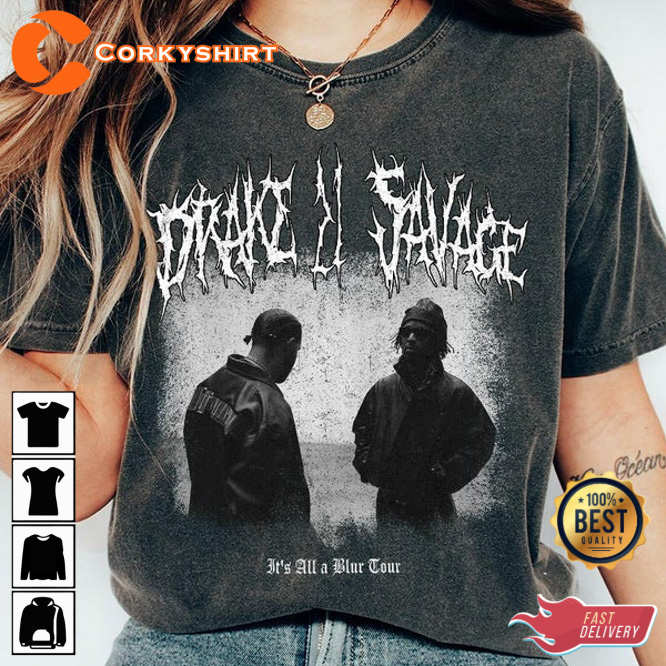 Drake 21 Savage It’s All A Blur Tour 2023 Y2k Style Rap T-shirt