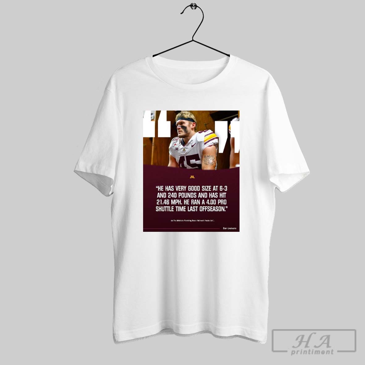 Gophers Football Cody Lindenberg He Has Very Good Size At 6 3 And 240 Pounds And Has Hit 21 46 Mph Poster T Shirt