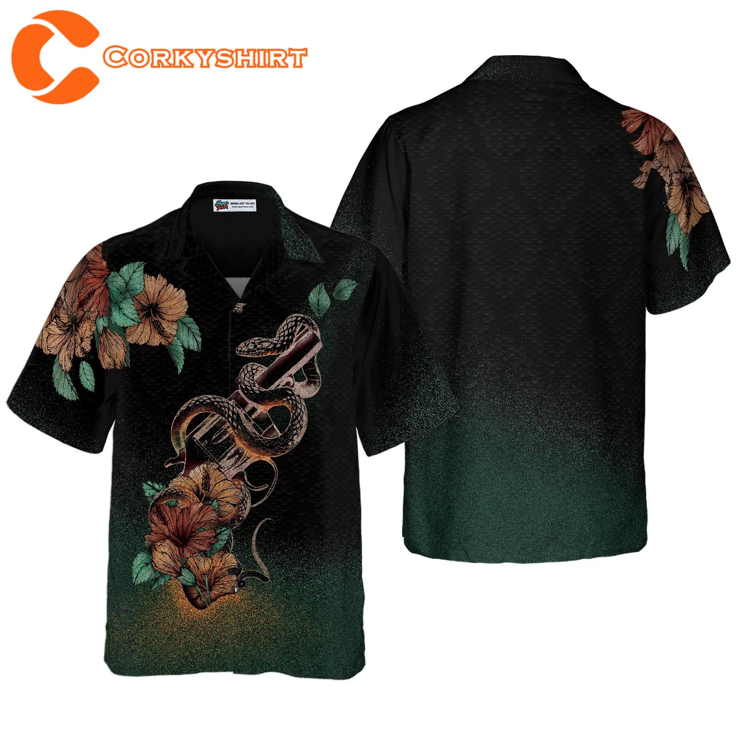 Gun And Snake Vintage Hawaiian Shirt, Hibiscus Flowers Black Hawaiian Shirt