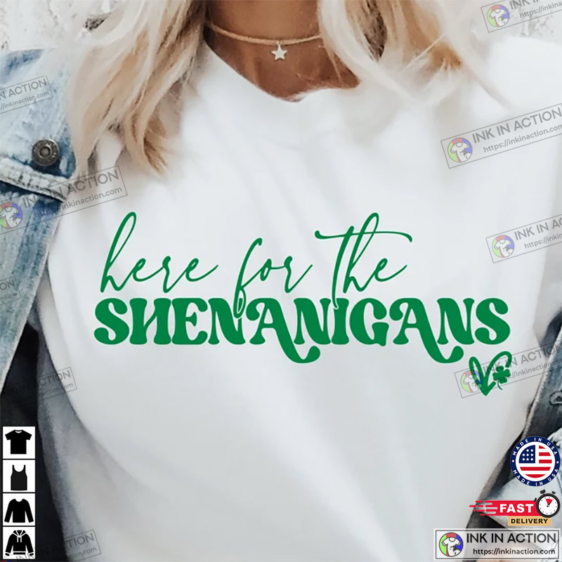 Here For Shenanigans Lucky St Patricks Day Shirt