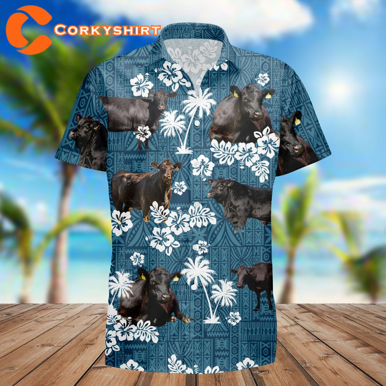 Hereford Cattle Black Angus Cow Aloha Floral Hawaiian Shirt