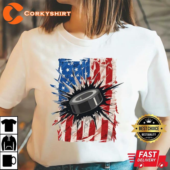 Ice Hockey Usa Flag Happy Holiday 4th Of July T-shirt