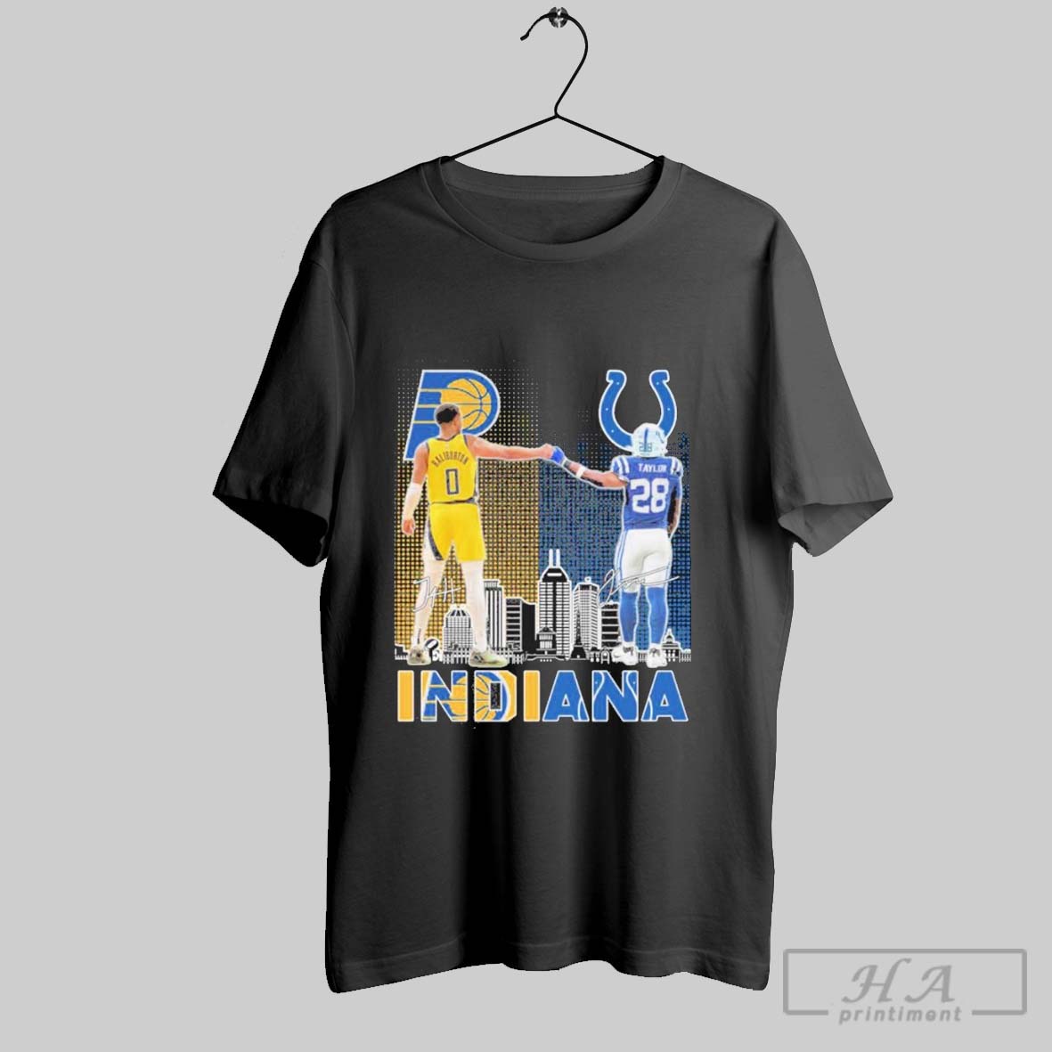 Indiana Sports Teams Skyline City Tyrese Haliburton And Jonathan Taylor Signatures Shirt