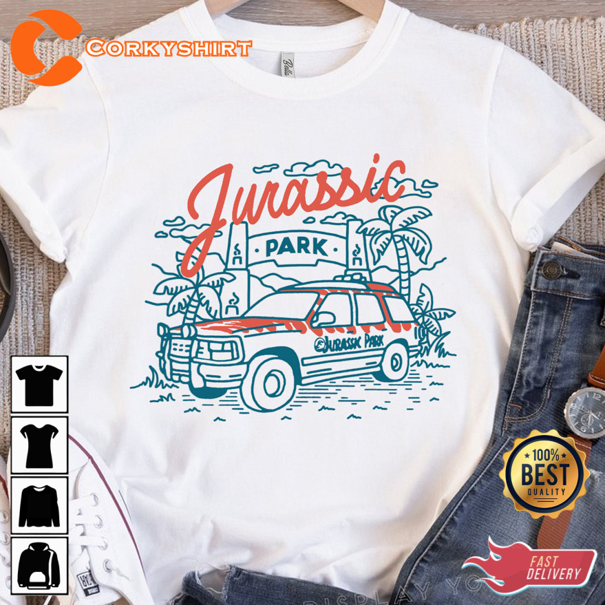 Jurassic Park Entrance With Tour Jeep Line Art Vintage Shirt