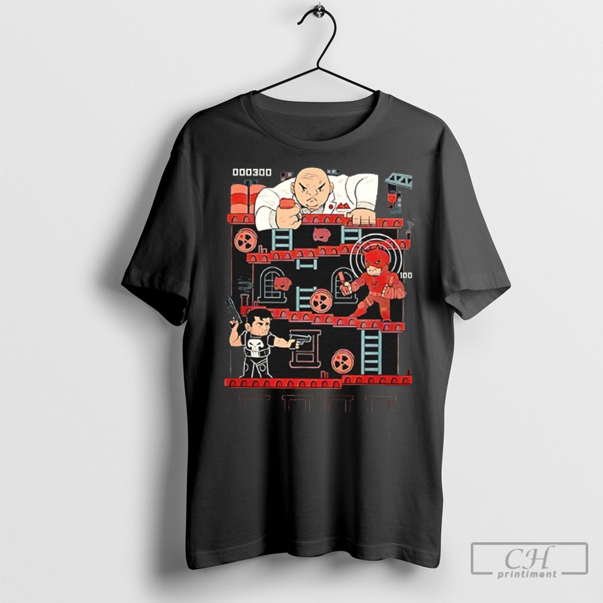 Kingpin Punisher And Daredevil X The Donkey Kong Arcade Game Hells Arcade Shirt