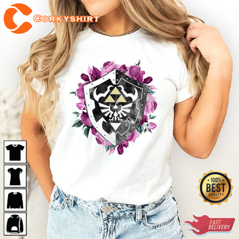 Legend Of Zelda Tri Force Floral Shield T-shirt