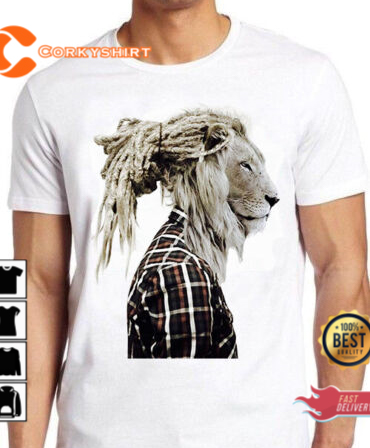 Lion Rasta Hair Jamaican Funny Art Cool T Shirt