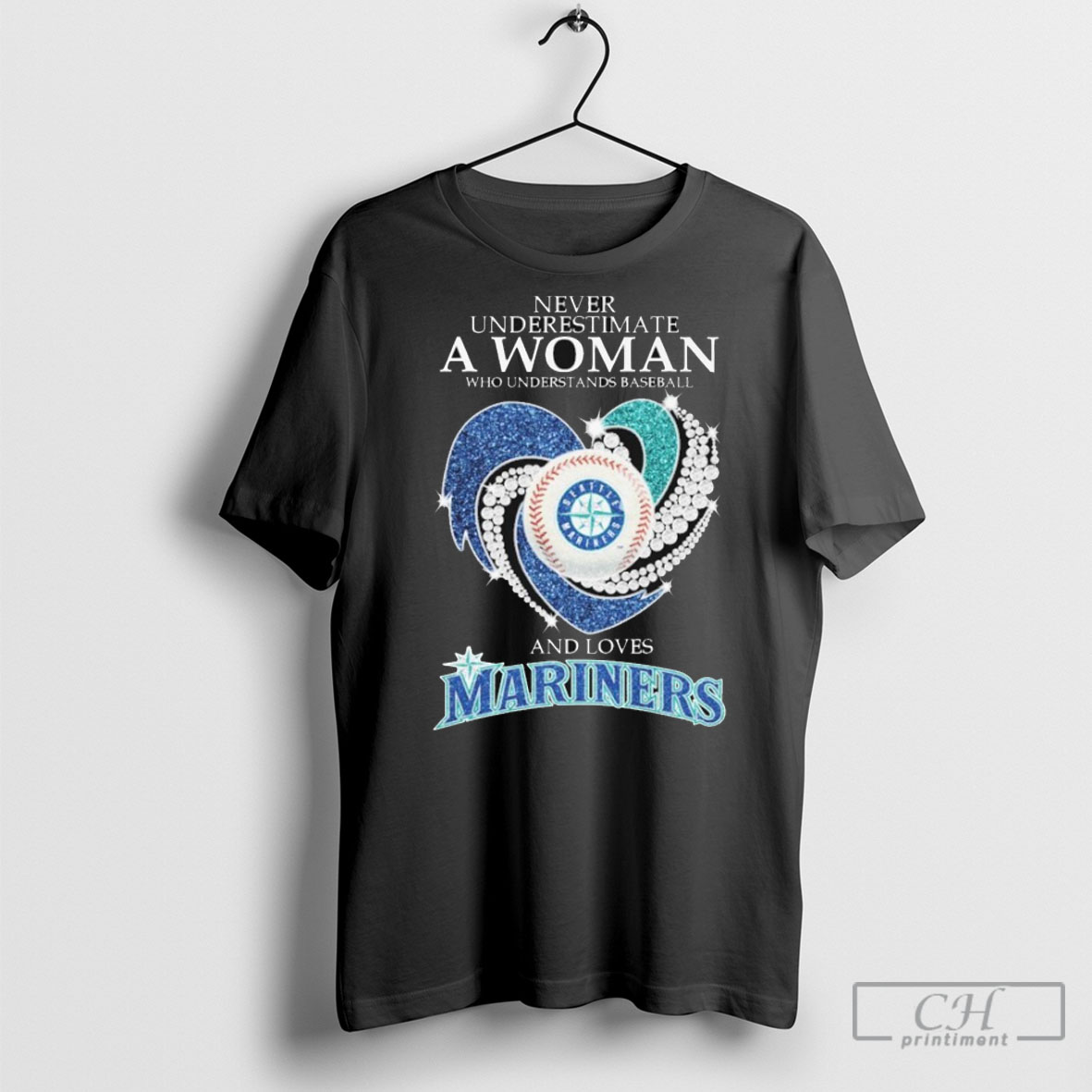 Never Underestimate A Woman Who Understands Baseball And Loves Seattle Mariners Diamond Heart T Shirt